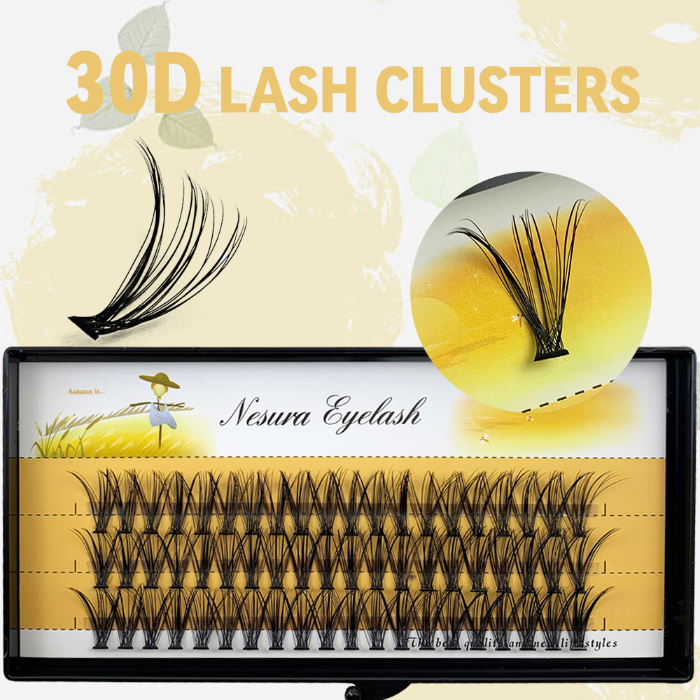 Cluster Lashes Extensions 30D 14mm Mink Individual DIY Natural Long Fake Eyelashes Segmented Fans 3 Rows Handmade Faux Fluffy