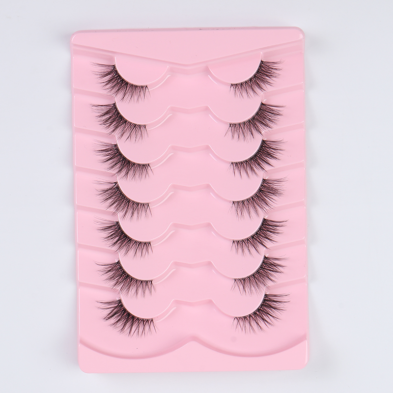 Half Lashes Mink Cat Natural Fake Eyelashes (7 Pairs) - 3D Wispy Faux Mink Lashes with Soft Black Cotton Band