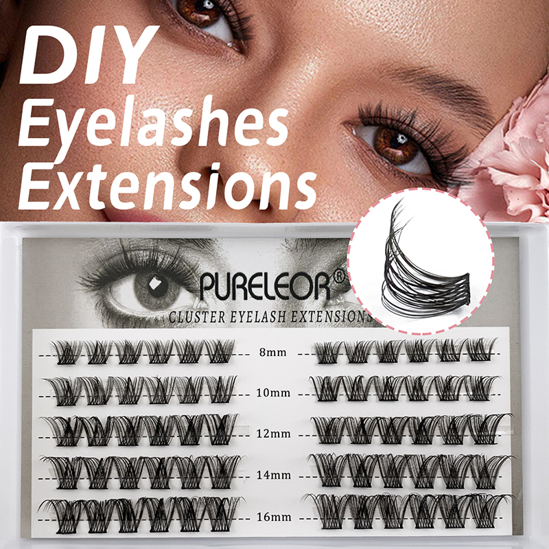 Hinarin DIY Cluster Lashes Individual Mixed Tray Faux Mink False Eyelashes Dovetail Segmented Natural